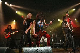 Closing the set was the mammoth “Rock Bottom,” built around a fantastic cutting riff and the sparkling trademark UFO melody; this had the crowd well and truly Rocking. Again Moore easily stepped out from the shadow cast by Schenker. He has fit into UFO so well you’d think he’d been there from the very beginning when he ambled over to a prostrate Pete Way during his showpiece solo to give him a boot as he lay on the floor for what seemed like several minutes. A puzzled Way looked up in surprise and rose to his feet without missing a note. Only UFO can do this! Those rough, unpredictable edges that UFO produce on stage are exactly the reason why they are a much-loved British institution.