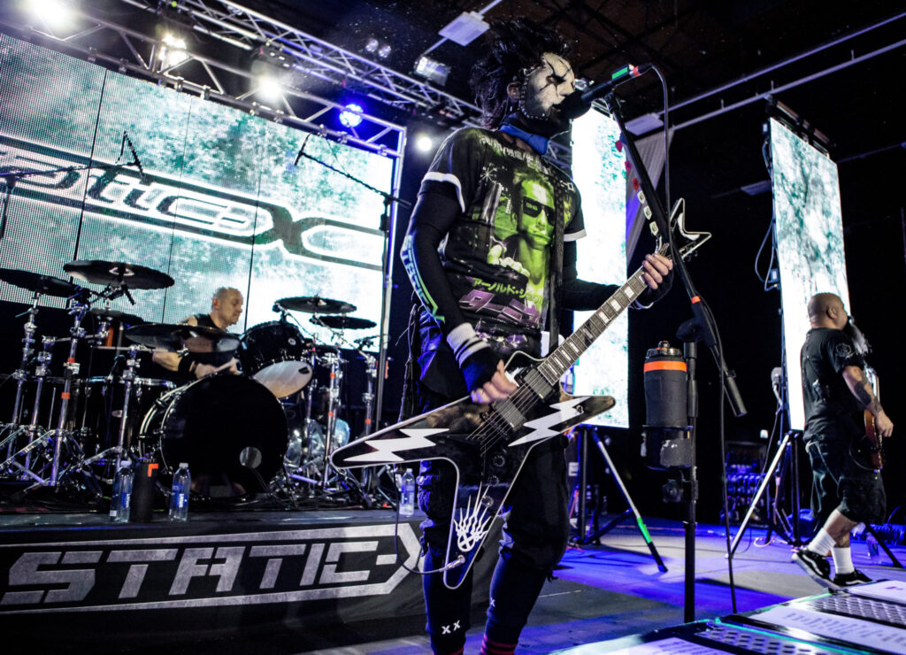Making a new record is one thing, how to bring this to the stage is something altogether trickier. Rather than bring in a straight forward replacement, Static-X have brought in an unknown named simply as Xer0, who bizarrely wears a mask in the image of Wayne Static.